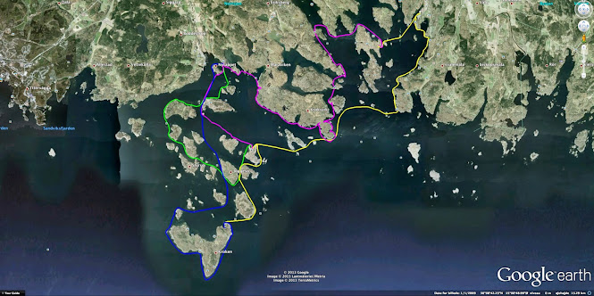 Vejret har været fantastisk med meget roligt vand; vi kunne runde pynten mellem de to skærgårde uden problemer, og vi kunne ro på ydersiderne af de yderste øer ud mod det store vand på helt fladt vand.
